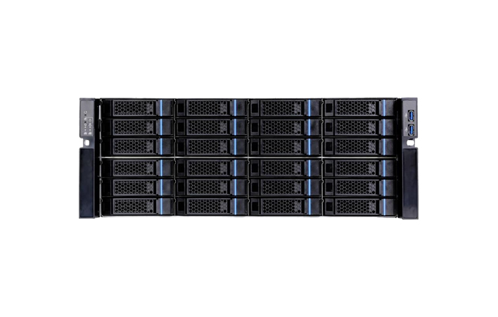 支持 36 塊 2.5/3.5 寸 SATA 熱插拔硬盤位,可選后置 2 塊 2.5 寸 SATA 熱插拔硬盤位。