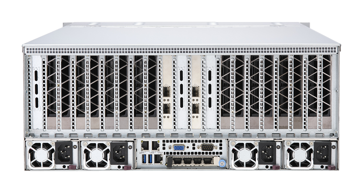 配置 10個(gè)PCI-E4.0 插槽,提供先進(jìn)擴(kuò)展能力,并可搭配 100G 以太網(wǎng)卡和 400G Infiniband 網(wǎng)卡;提供先進(jìn) IO 吞吐能力。