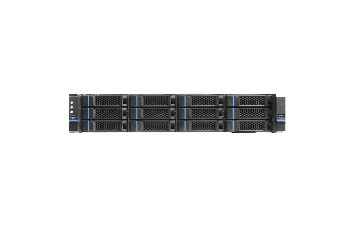 支持 12 塊 2.5/3.5 寸 SAS/SATA 熱插拔存儲(chǔ)盤位,可選后置 2 塊 2.5 寸熱插拔硬盤位;