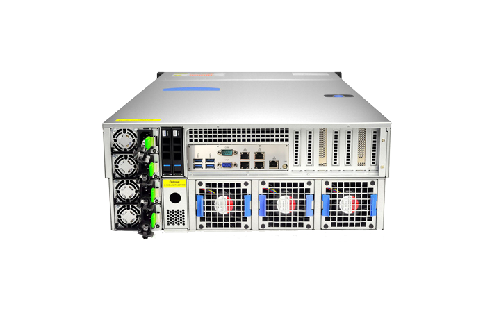 10 個全高 PCIe 插卡位,最大支持 10 塊雙寬全長加速卡,最多支持 7 張單寬全長設(shè)備, 1* M.2(PCIEx4)2280、2210,板載 2 個 Oculink 接口。